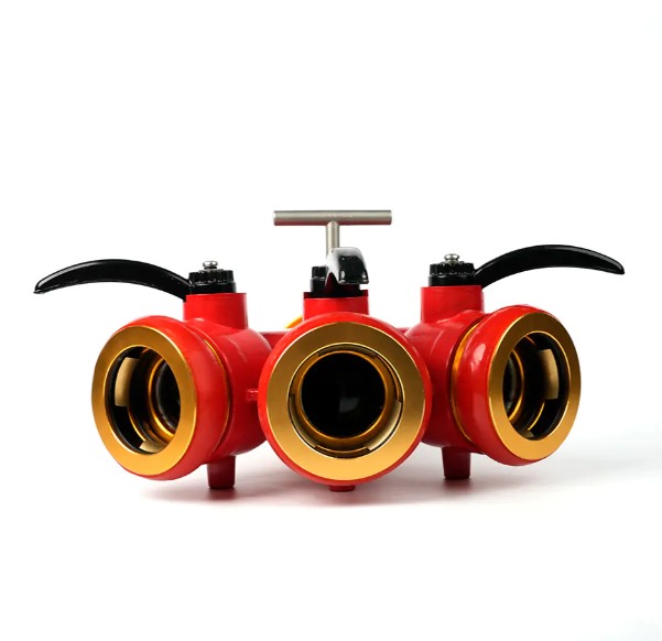 Distribuidor de manguera contra incendios de tres vías con bloqueo